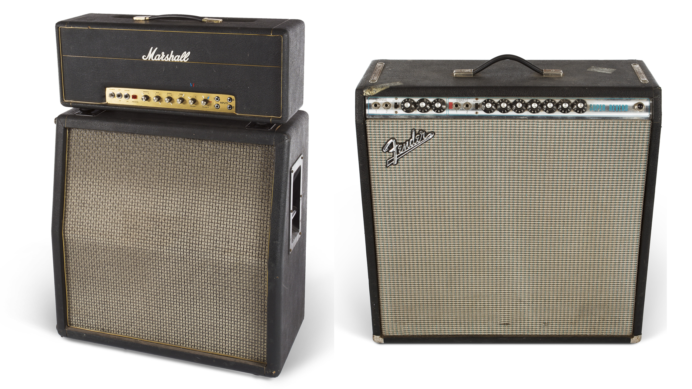 The guitars, pictured above, include a 1935 Martin F-7 acoustic and a 1957 Gretsch Country Club 6182, amongst several vintage gems. There are more modern items, like his 1999 Gretsch White Falcon SS, but all of the estimates look overdraft-worryingly reasonable to us.