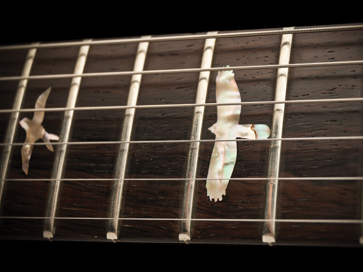 “We still use the same fretwire we’ve always used,” notes Paul. “It wasn’t on the prototype because we hadn’t come up with it then. It’s in-between medium and jumbo-size wire. I split the difference so people wouldn’t refret their guitars unless they needed to because of wear.”