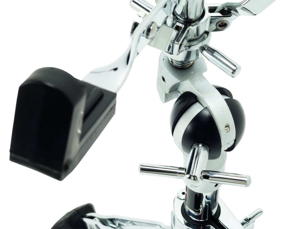 Take the 9606 snare stand, for example - the near limitless adjustability of the rotating ball system is all well and good in theory, but it's stiff enough to require you to hold the base (by standing on the feet for example) while you manoeuvre the drum around, for fear of the whole thing toppling over. It offers something that standard tilter arrangements don't, but these things feel a little like engineering for engineering's sake. And the generously sized wingnuts used to secure everything are so big that they too easily interfere with each other, which can slow your set-up.