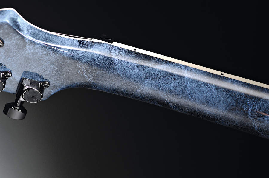 We love the Devil's Tail headstock design - which incidentally also allows for an unusual 2+4 configuration of cosmo black Gotoh tuners - and the exclusive clock-face inlays. The time depicted on each inlay relates to the fret of their specific location: three o'clock at the third fret and so on.