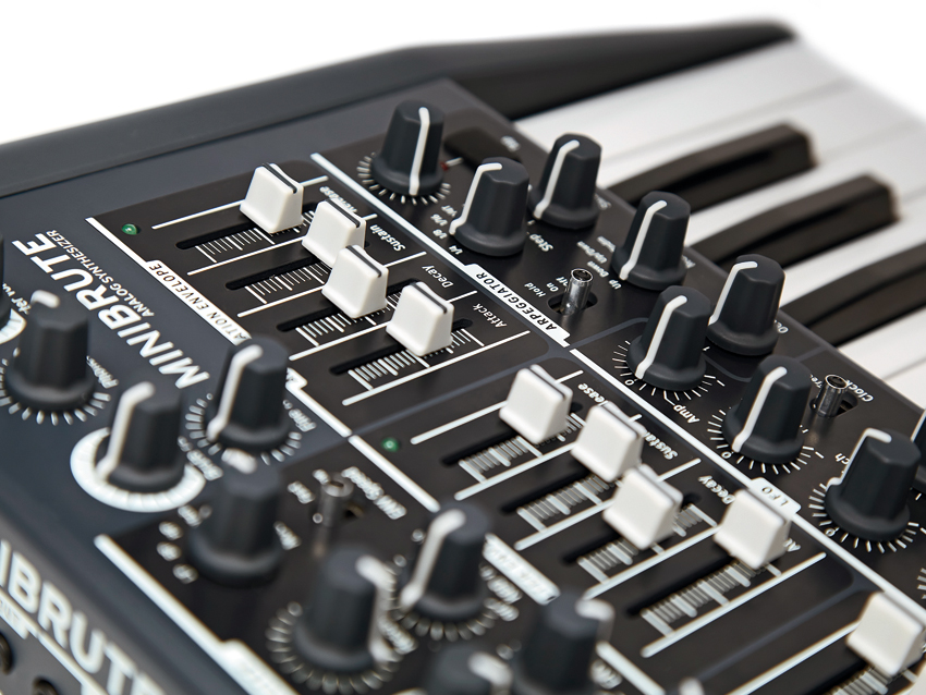 The MiniBrute falls into the traditional discrete VCO design camp, but includes some interesting additions that take its sound-generating capabilities beyond what, at first glance, appears to be a modern take on Roland's classic SH-101. This also means that the synth requires a warm-up period of at least five minutes to reach a pitch-stable state.
