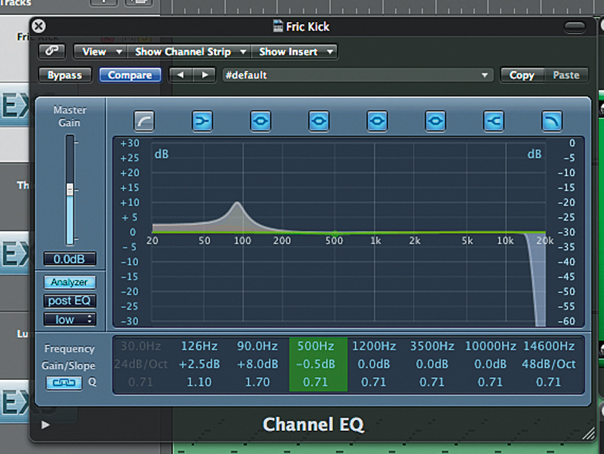 Step 5: Friction picks out a chunky snare with a solid low end that complements the more mid-flavoured snare from the break. This has to sound good when played at the same time as the break’s snare, so he boosts it slightly at 200Hz to accentuate the body of the sound and also cuts below 90Hz to avoid any bass clutter.