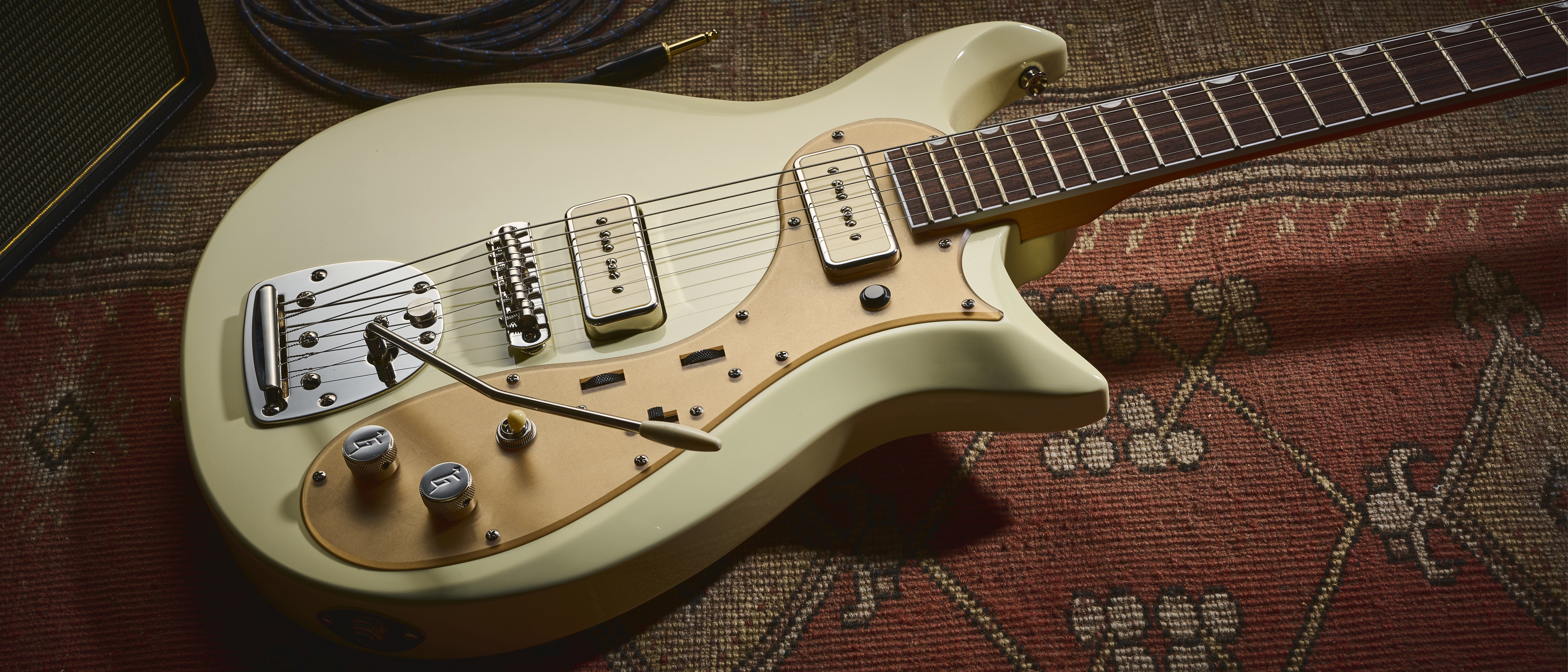 Essentially, you get the body of a Gretsch Princess with the Rhythm/Lead switching of a Fender Jazzmaster, and an added kill switch to boot. In Lead mode, standard controls including a three-way toggle, with master volume and tone parameters are activated.