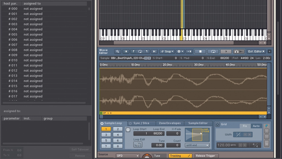 Load two copies of the same sample into your sampler. Loop them both, but trim one to be slightly shorter than the other. Draw a long note into your piano roll for each sample and let them drift in and out of phase with each other. Make sure they’re both playing at the same pitch.