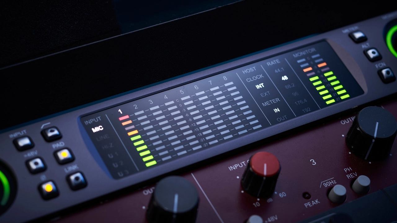 Most audio interfaces include some kind of metering on the front panel. This is usually a light that goes from green to red to indicate a good signal or too strong a signal. Many modern interfaces come with a companion app that allows you to see a more detailed picture of your metering so where possible, we highly recommend using this versus the less accurate lights on your interface.