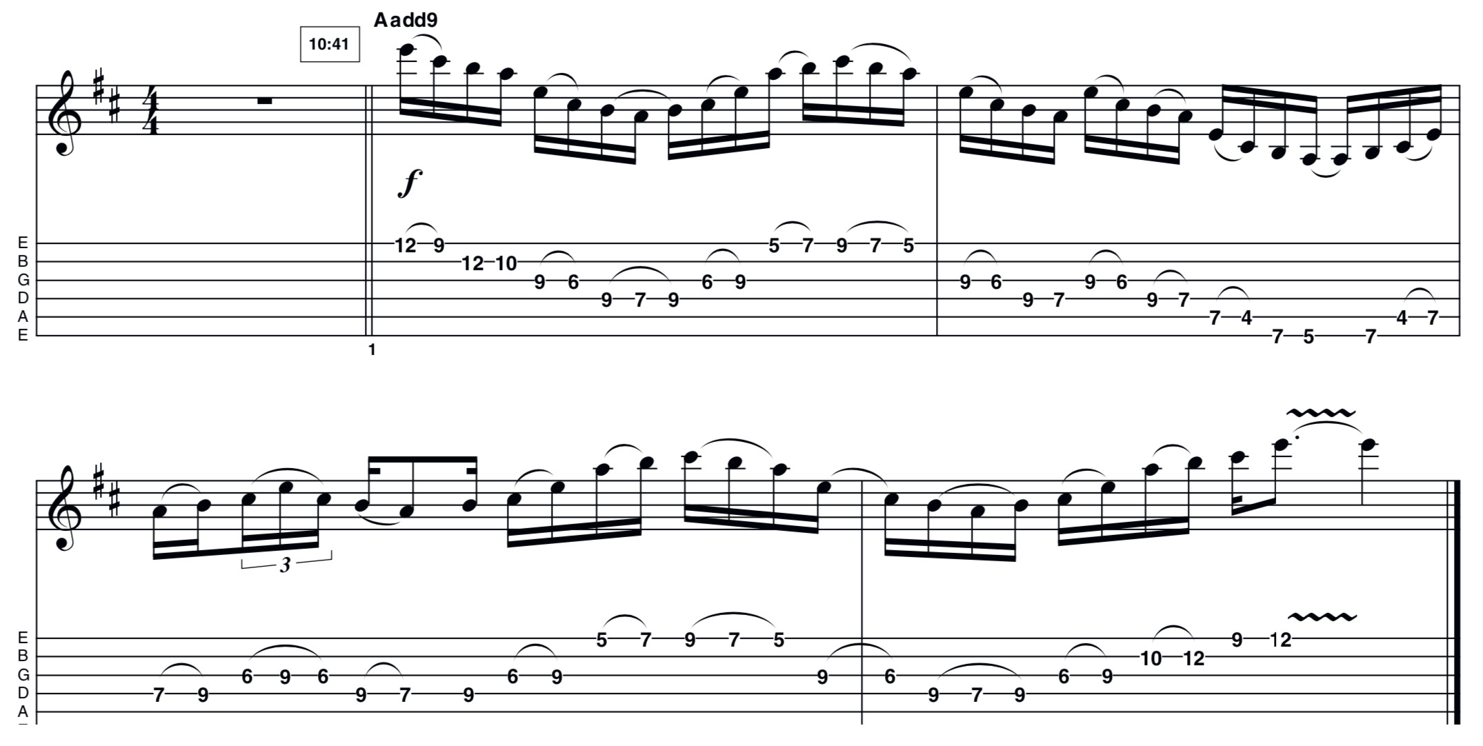 Example 4. Aadd9 Arpeggio (Over D Major)