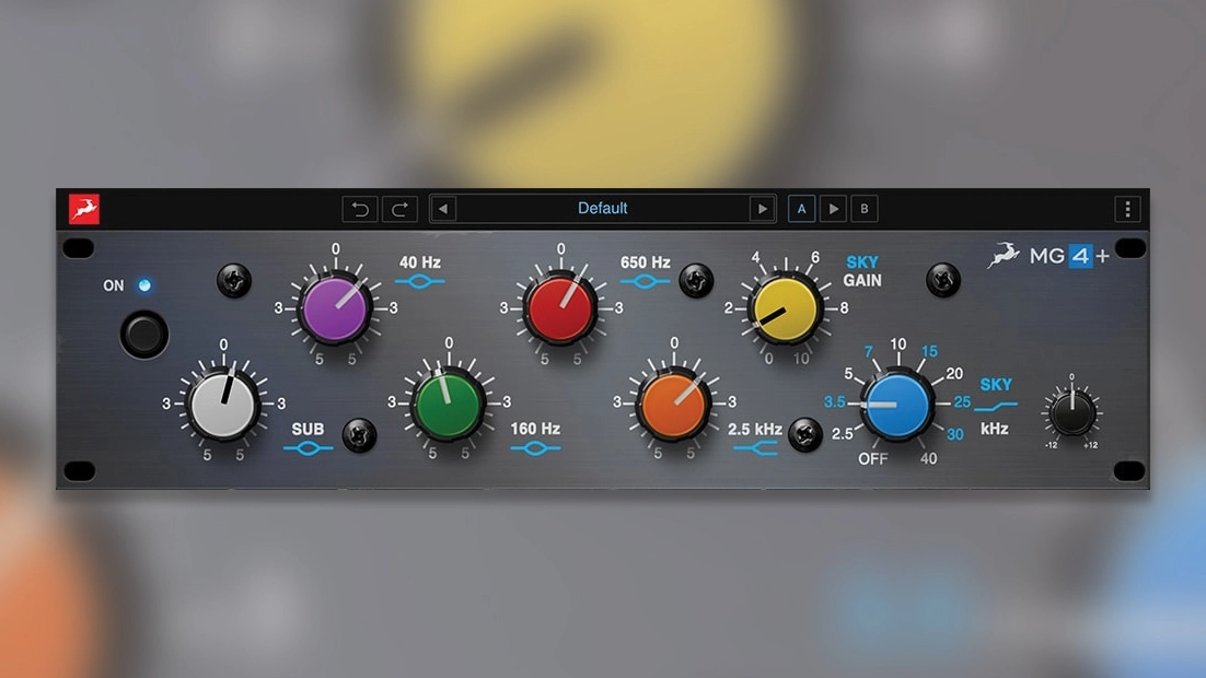 MG4+ features boost/cut knobs for five frequency bands (40Hz, 160Hz, 650Hz, 2.5kHz and a sub band around 15Hz) along with frequency selection and gain controls for the Sky Band. Simple but effective, MG4+ should work its magic on vocals, acoustic guitars, or any signal in need of some extra top-end presence and clarity.