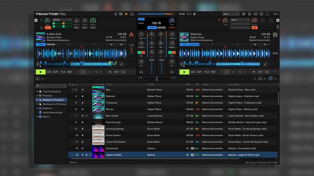 Traktor Play is a two-channel DJ application that offers Beatport streaming integration and access to a core selection of the creative tools found in Traktor Pro 4.