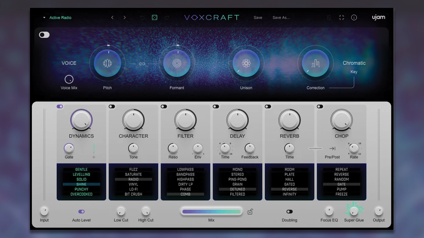 Joining these six modules are a handful of nice-to-haves at the very bottom of the menu – controls for EQ, double-tracking and auto-gain – plus input gain, output gain and a Mix slider. Voxcraft arrives with 100 presets with which to get started, and there's a randomization control for instantly creating new presets with fully randomized parameters.