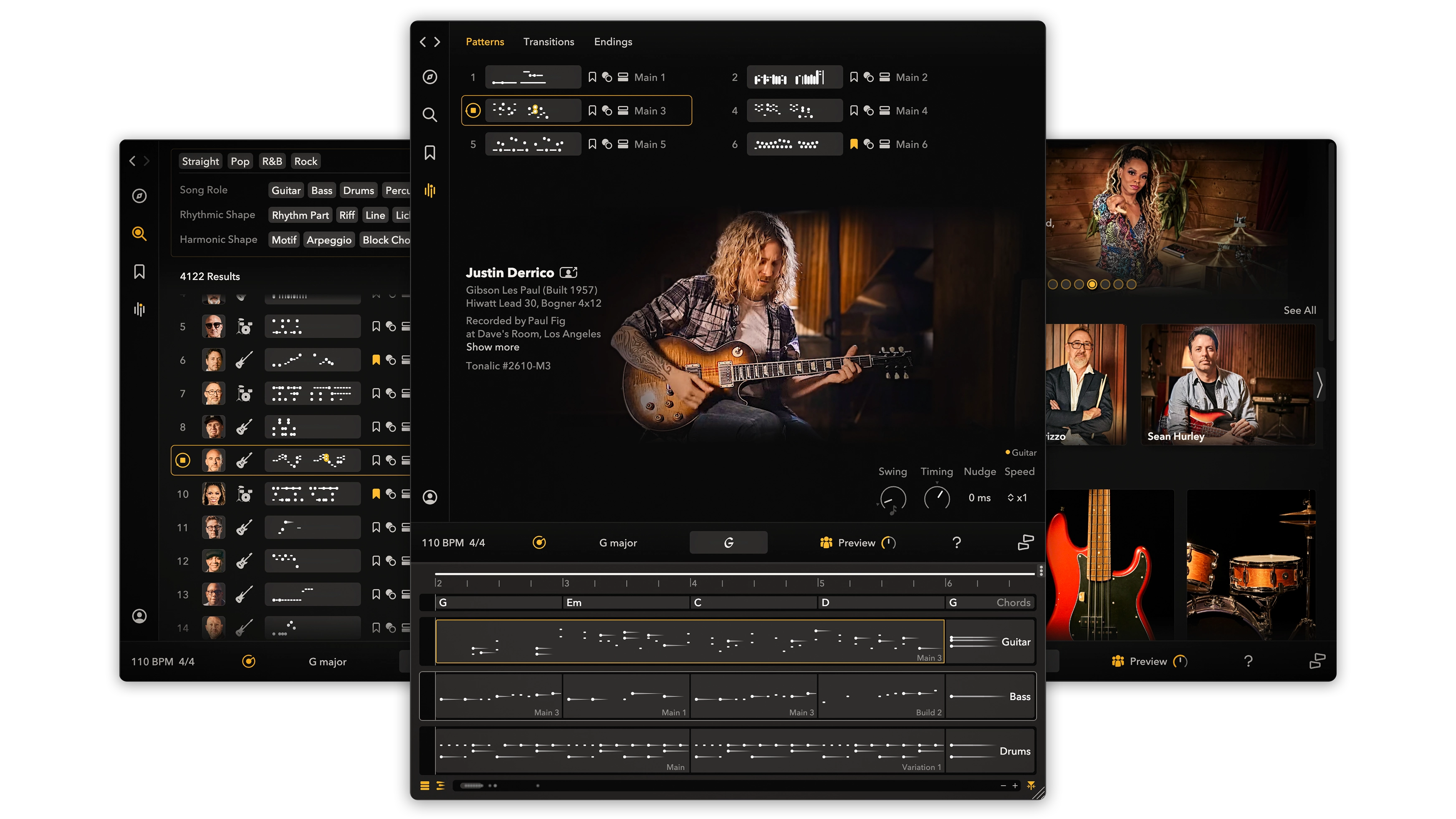 Open up Tonalic, and you’ll be presented with a library of musical patterns, or Tonalics, categorized by session player, instrumentation and genre, with a selection of 180 guitars, basses and drumkits on offer. A cast of 30 experienced instrumentalists were called upon to record material for Tonalic’s library, including Foo Fighters bassist Nate Mendel, Evanescence guitarist Troy McLawhorn, and renowned session drummer Kenny Aronoff. The library will continue to expand as time goes on.