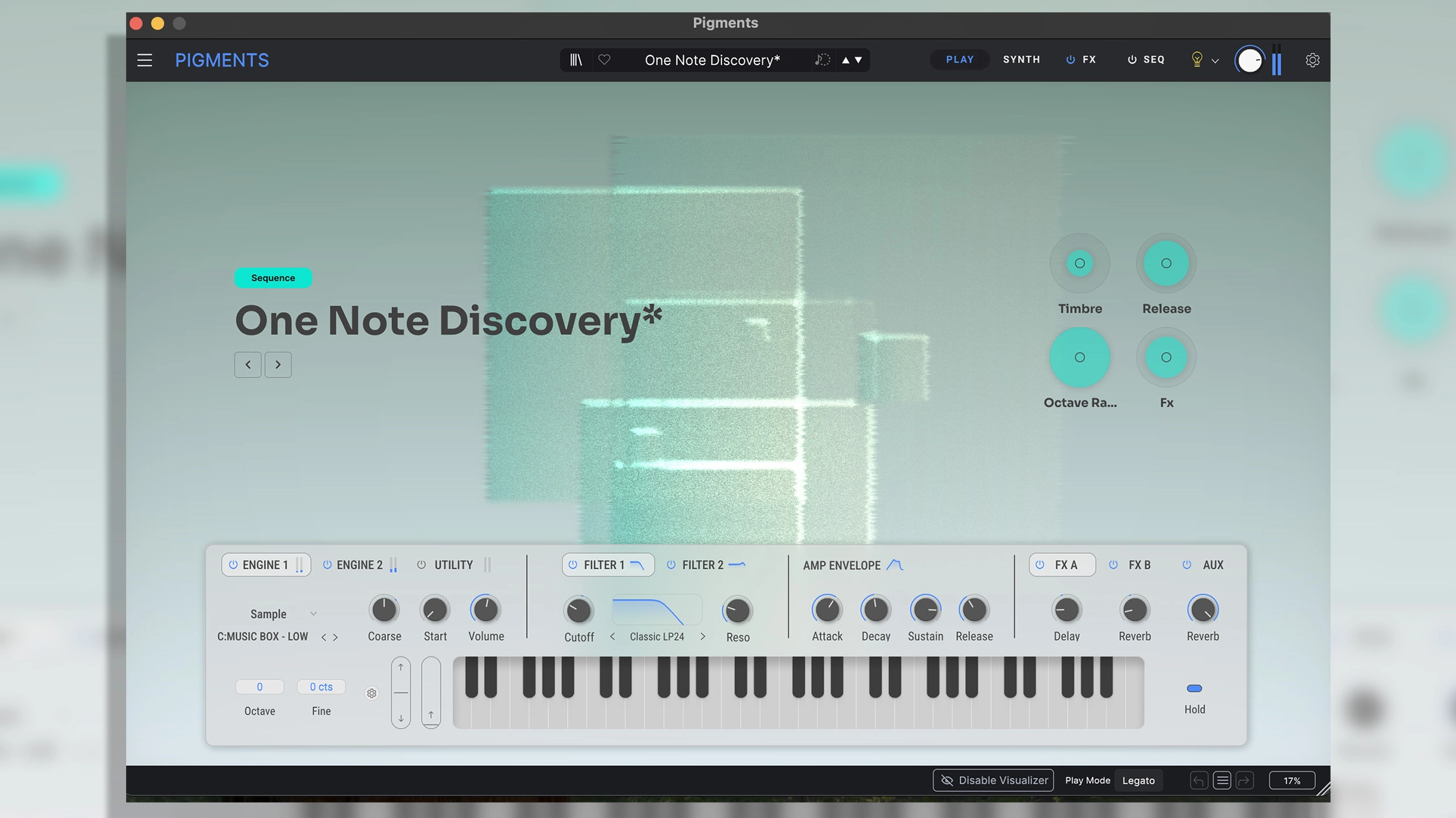 Pigments 7 also introduces an overhauled design for the Play View. This is the simplified UI window that offers users top-level control over presets without the complications of the full synth engine.