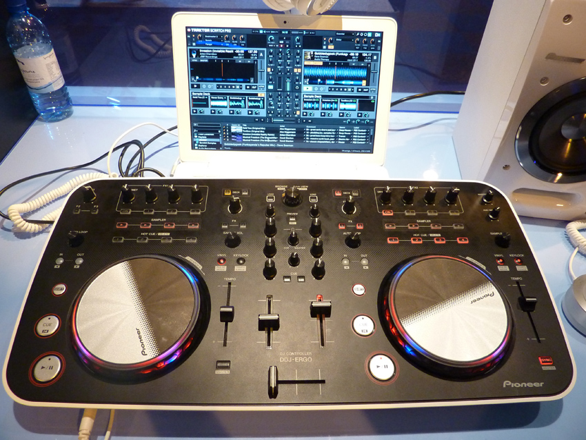 Pioneer’s new DDJ-ERGO-V, an entry-level controller, ships with Virtual DJ LE, though as you can see here, it was also being demoed with Traktor.