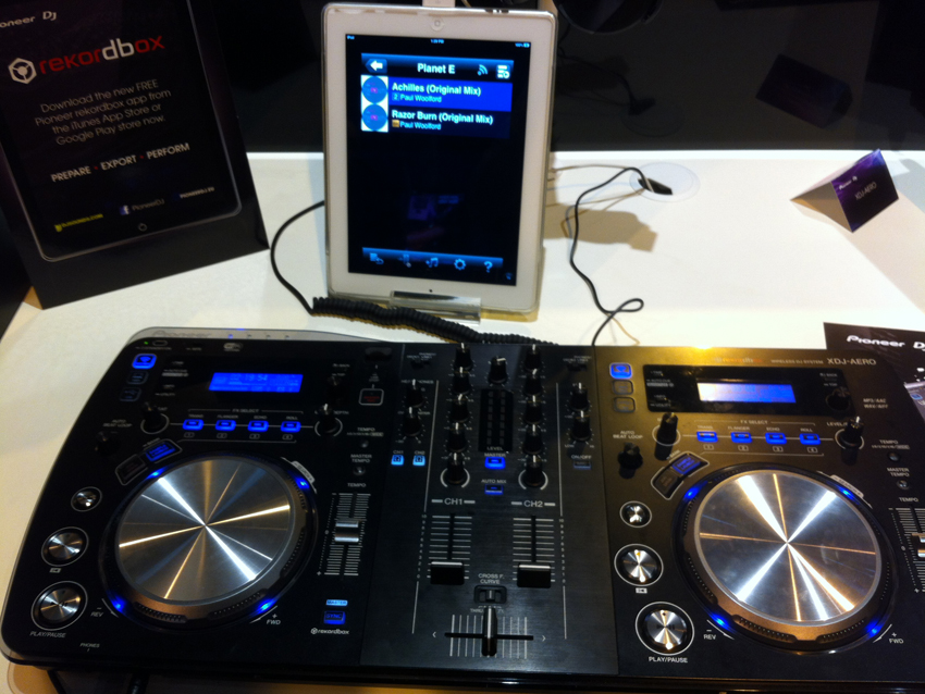 Pioneer had a couple of new controllers to show off at this year's event, the first being the all-in-one digital DJ system XDJ-AERO, which can wirelessly sync tracks from a mobile device running the app version of rekordbox.