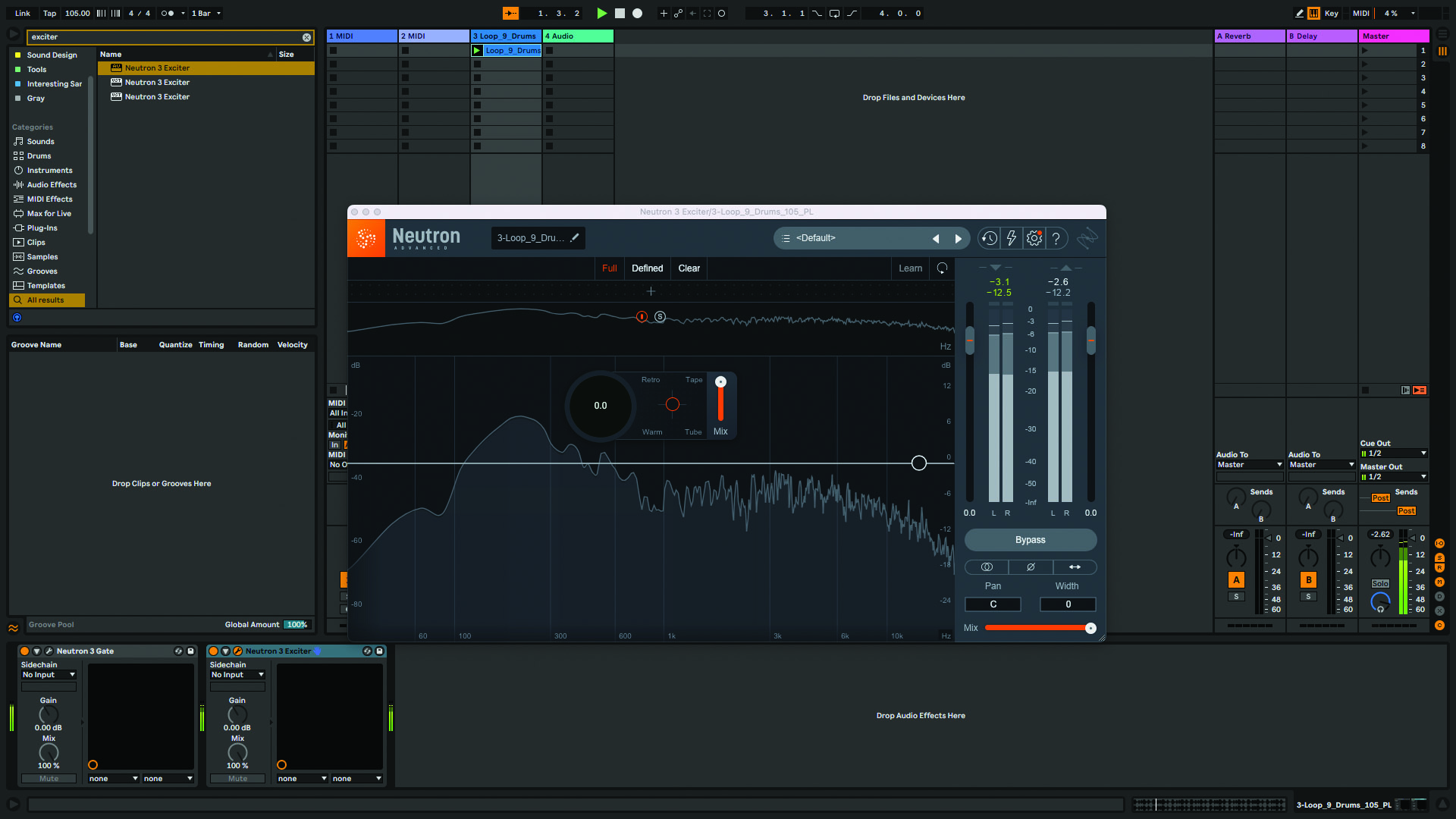 Step 1: Let’s take our loop with the kick drum removed and add some character to it with Neutron 3’s multiband exciter. We want to liven up our hats and snare, but in slightly different ways – this is the perfect job for a multiband exciter.