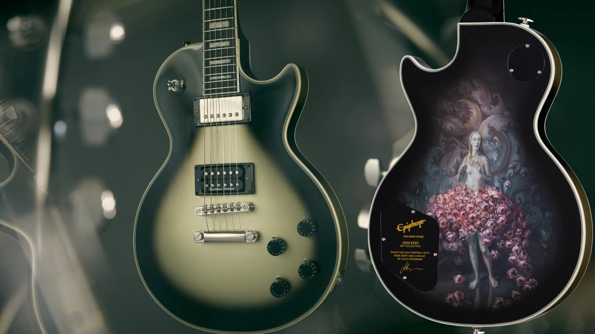 Featuring artwork from Julie Heffernan, the limited edition singlecut ships with a Seymour Duncan Distortion at the bridge and a reverse-mounted Epiphone ProBucker Custom at the neck