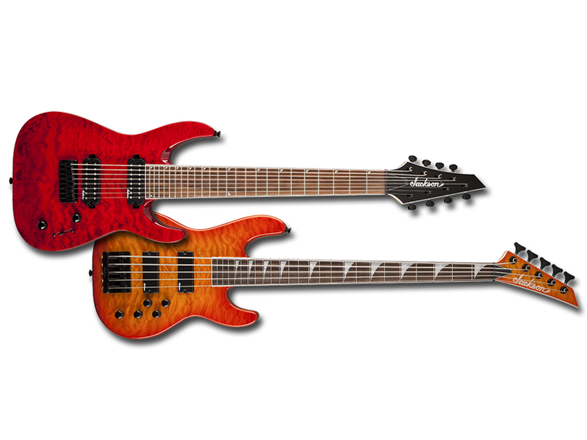 Both models boast an arch-top mahogany body and through-body maple neck, 12"-radius rosewood fingerboard with 24 jumbo frets, 25.5" scale length, stylish fingerboard and headstock binding, direct-mount DiMarzio® Chris Broderick signature pickups, Floyd Rose® Special tremolo (Special seven-string tremolo on seven-string model), Jackson die-cast tuners and Dunlop® locking strap buttons. Available in Satin Black and Snow White.