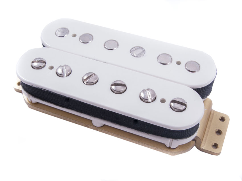 The neck pickup is made with ceramic magnets and is wound with specially coated Formvar wire. The bridge pickup is made with alnico 5 magnets, is perfect for an aggressive sound, and is wound with special enamel-coated wire.