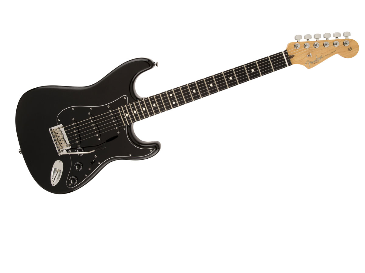 PRESS RELEASE: Simple and elegant, this a great American Standard Stratocaster cloaked in an all-black finish complemented by a black pickguard, black control knobs, black pickup covers and—in a rare touch for a Fender instrument—a smooth-playing ebony fingerboard.