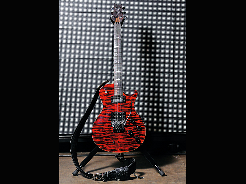 After jumping ship to PRS from Gibson, Neal's gigging workhorse is now a customised 22-fret PRS Singlecut madefrom mahogany and curly maple, with a Floyd Rose vibrato, DiMarzio Fast Track (with sustainer) in the neck and ’57 Plus at the bridge.