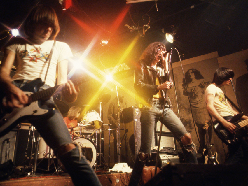 The Ramones (from left, Johnny, Tommy, Joey and Dee Dee) onstage at New York's CGBG, 1977. © Hiroyuki Matsumoto/amanaimages/Corbis