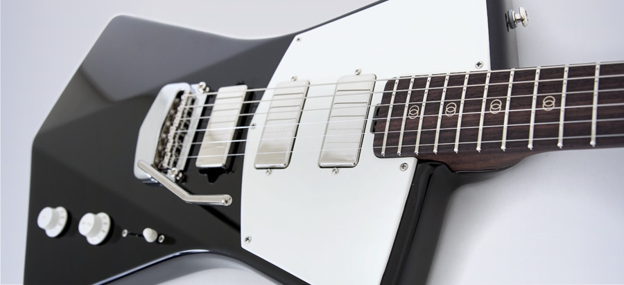 The guitar, which is available in Black or Vincent Blue - a new finish hand-mixed by Annie Clark - expands on Music Man's tradition for leftfield shapes and was developed by Clark alongside Music Man's design team.