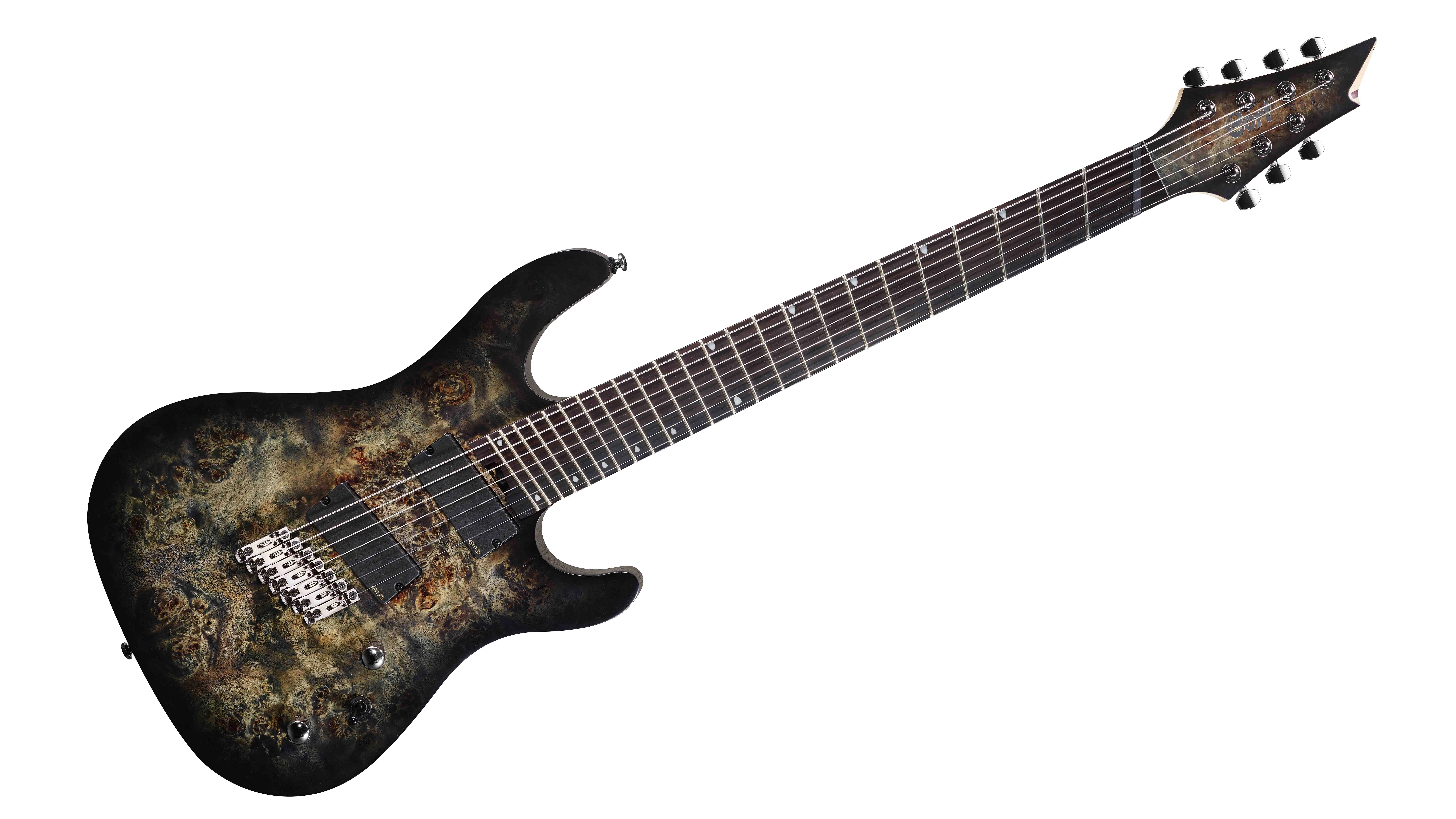 Key to the model’s appeal is a pair of EMG 707 pickups, while the fanned frets offer a 25.5” to 27” multi-scale for even string tension and tone.