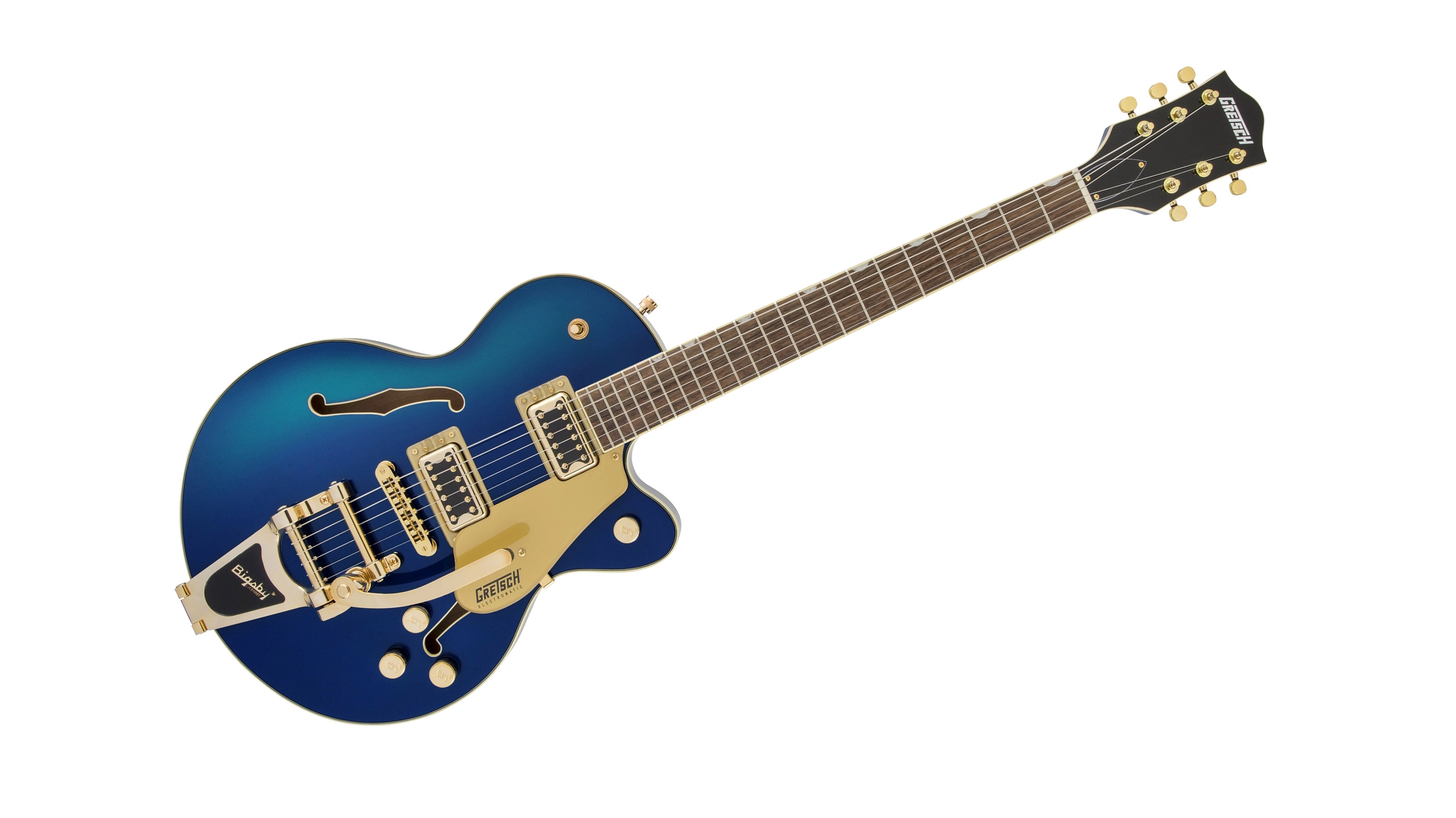 The smaller-bodied semi-hollow single-cut electric will be available in three new finishes, including Azure Metallic, Cadillac Green and Orange Stain. Underneath the typically desirable Gretsch paintwork is chambered spruce centre block, while the guitar is also equipped with Dual Black Top Broad’Tron humbuckers, Bigsby B70 vibrato and Graph Tech NuBone nut. All three finish options will have an MSRP of €979 / £859.