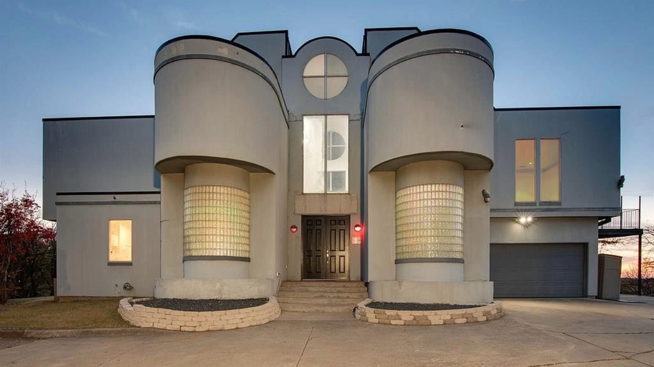 The distinctive gated house, with its two central columns and 30-foot barrelled ceilings was built in 1995, and sits on a hilltop plot covering around 1.5 acres, with views of nearby Forth Worth, Veridian Lake, Las Colinas and Arlington. It was also home to the recording sessions for Hellyeah's 2010 album, Stampede.