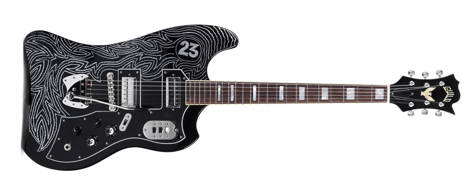 Finished in black, with a tribal flame pattern and the number 23 on its shoulder, the T-Bird is a change of pace from The Cure frontman's usual complement of Schecter UltraCure signature guitars.