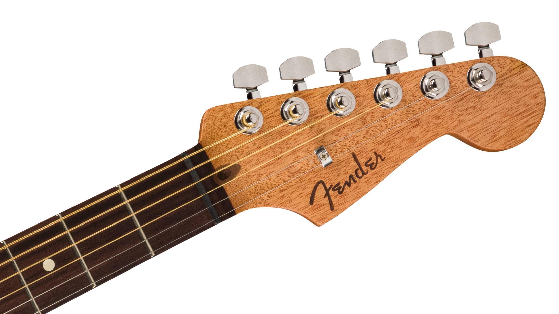 - ELECTRICS: Two-pickup configuration: Fishman under-saddle transducer, Fender Acoustasonic Shawbucker, master volume, Blend knob, three-way Voice Selector lever switch. Single mono output. Nine-volt battery power (up to 22 hours battery life).