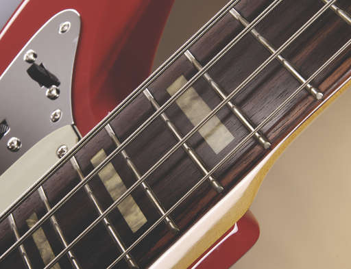 In spite of being endowed with a pair of Jazz pickups, plus a physical similarity of positioning, the complex active/passive circuitry ensures that the Jaguar bass has a sound all of its own.