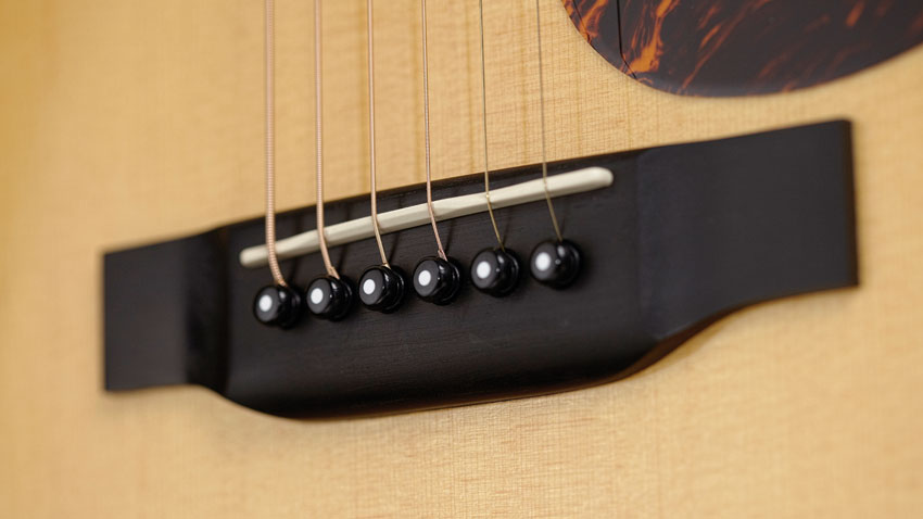 Interestingly, while traditional bone has been used for the nut, Graph Tech's Tusq is the chosen material for the compensated saddle. This is because Tusq, apparently, transfers string vibration to the undersaddle pickup much more evenly than bone - a prerequisite for an electro whose amplified performance is all about delicate tonal inflections and nuances.