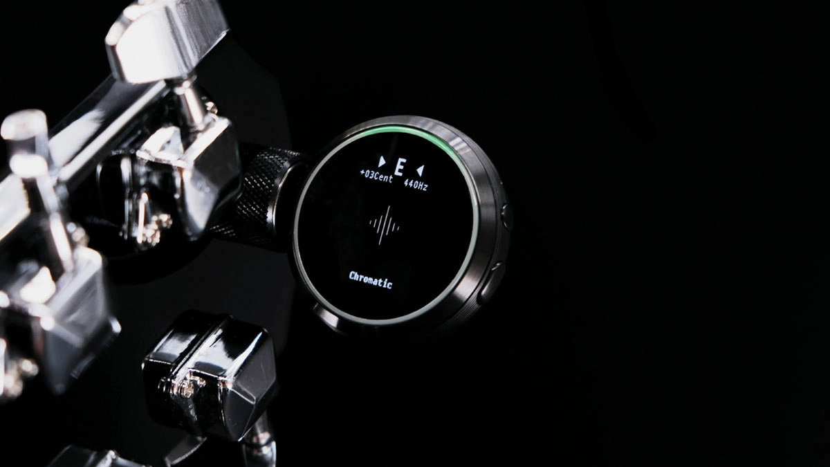 The centrepiece of the Core is its ability to serve as a tuner for your instruments. If you’re using it on a guitar, it will magnetically attach to the tuning pegs and display tuning as note-and-cents, glowing green when you hit the target. This is also where the metal disc comes in. Attached to a violin, you can use it for pitch detection as you tune the strings.