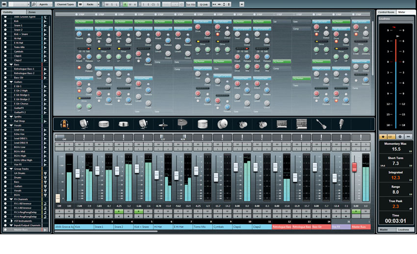 The Visibility/Zones column enables you to decide not just which channels you want to see but in what order they should be arranged. You can show (and grow) only the fader sections, for instance, or toggle a notepad for each channel, channel overview and more. Old tools like in-line EQ curves and large meters are still available.