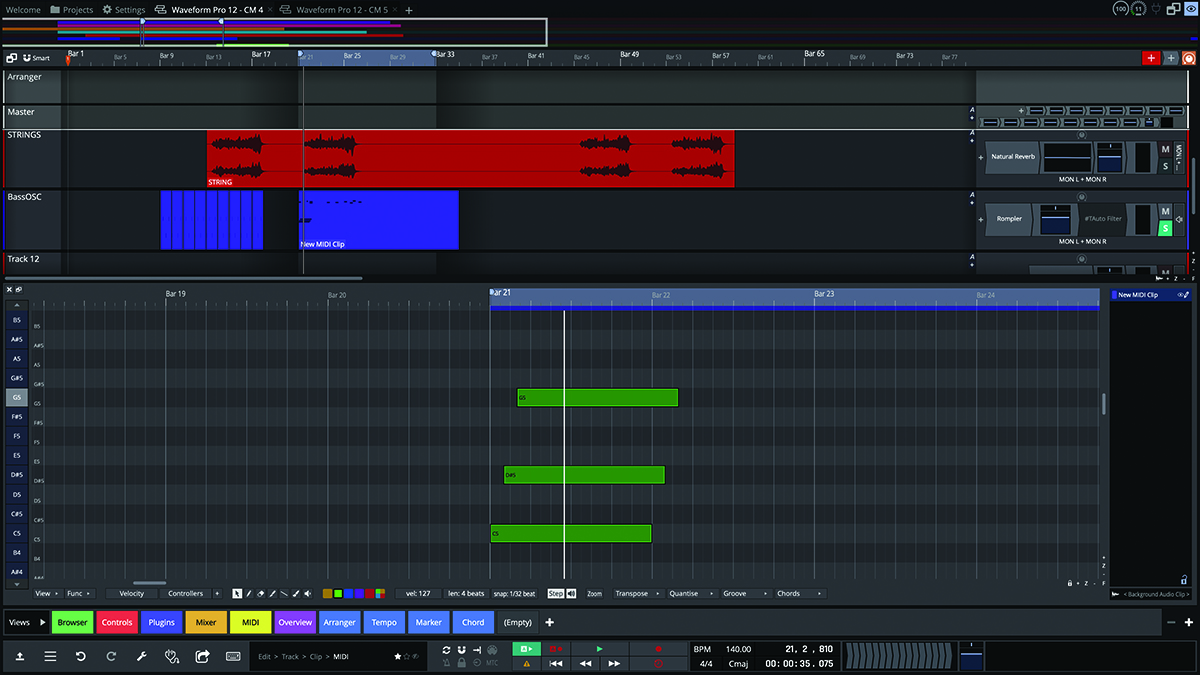 The most significant change was the option to try an in-development audio engine, so it should come as no surprise that Waveform Pro 12 sports a shiny new audio engine, with perfect plugin delay compensation, substantially improved CPU performance and better support for multiple CPU cores. Also, no surprise are the various operational refinements, including many new MIDI features, an improved Browser and floating plugin menu.