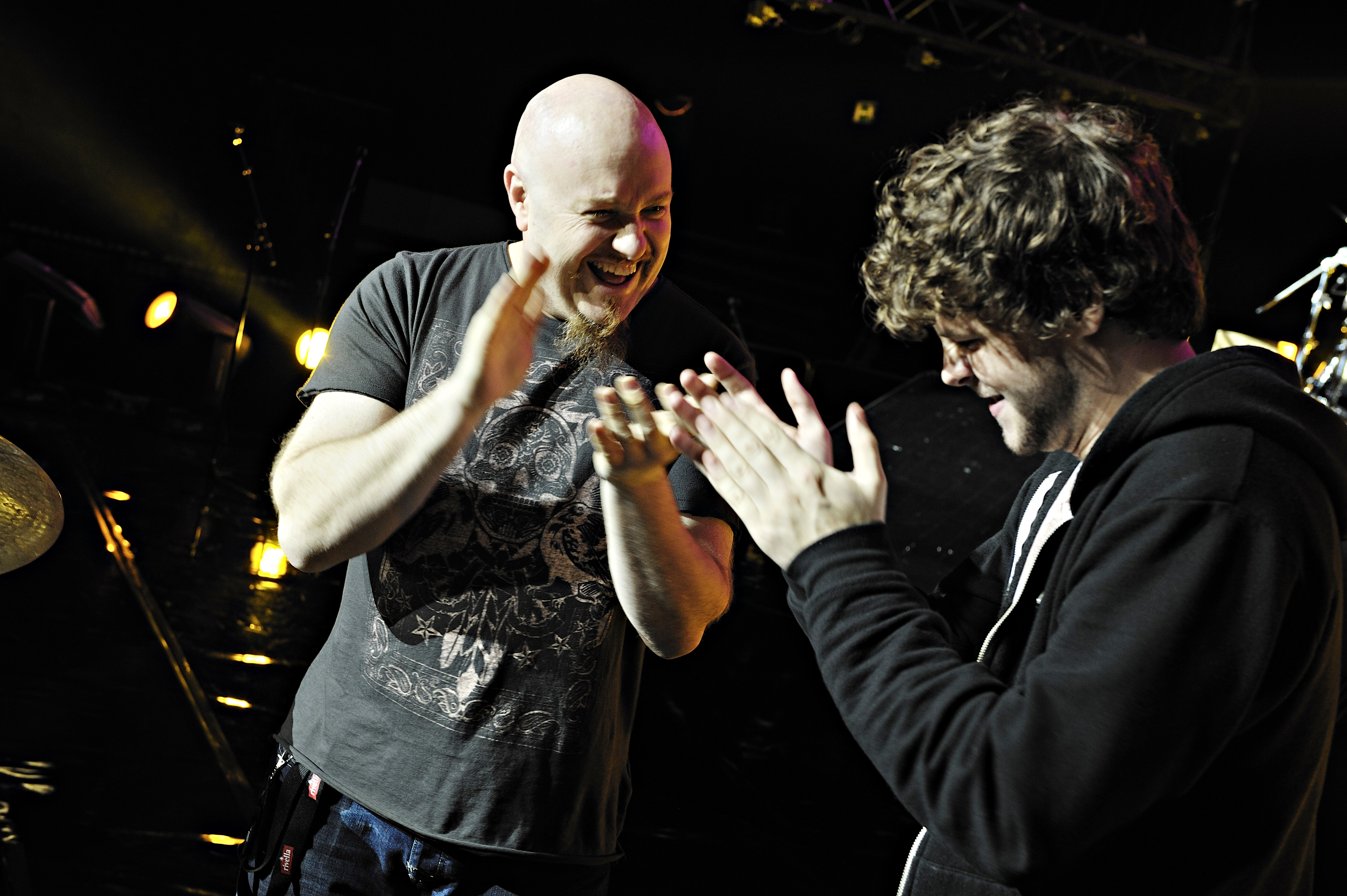Jay: “I had a couple of lessons when I first started but I tend to just put on a song and eventually fall into it! I think if our schedule ever lets up a little bit I’d love to take some lessons with Steve. His fills are great. He’s a huge inspiration to me. He looks like a security guard but he’s incredibly talented and one of the most genuine people ever. I like working with people like that because you feel better about your job with them around.”