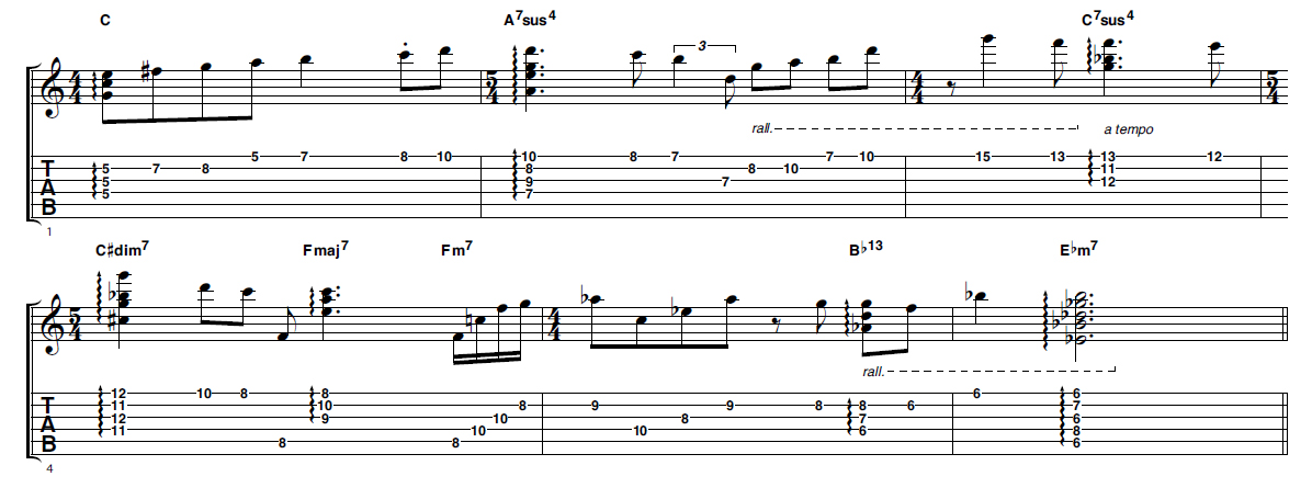 You can play these notes in loads of different positions, which all give different melodic possibilities. Once you've got the hang of the chords, check out Alex's improvised chord melody (tabbed on page two). Alex mixes up some slightly more complex triads with a tasteful melody.