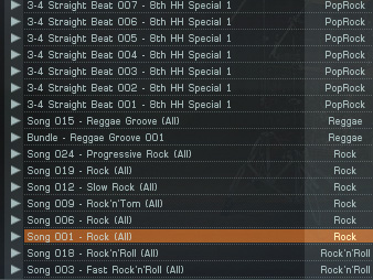 Step 5: Still not convinced? Addictive Drums has its own well-performed MIDI patterns, if you'd rather choose from their selection. Click Beats to bring up the menu. We've picked Song 001 - Rock (All). Drag and drop it from the list into your sequencer's arrange window.